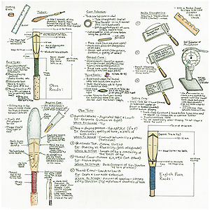 This hand drawn chart explains in detail how to create professional reeds. It is especially useful for oboists seeking to master their reed making skills. I created it for the Indiana University reed room, and it was edited by Professional Oboist and Professor of Oboe at IU, Linda Strommen.